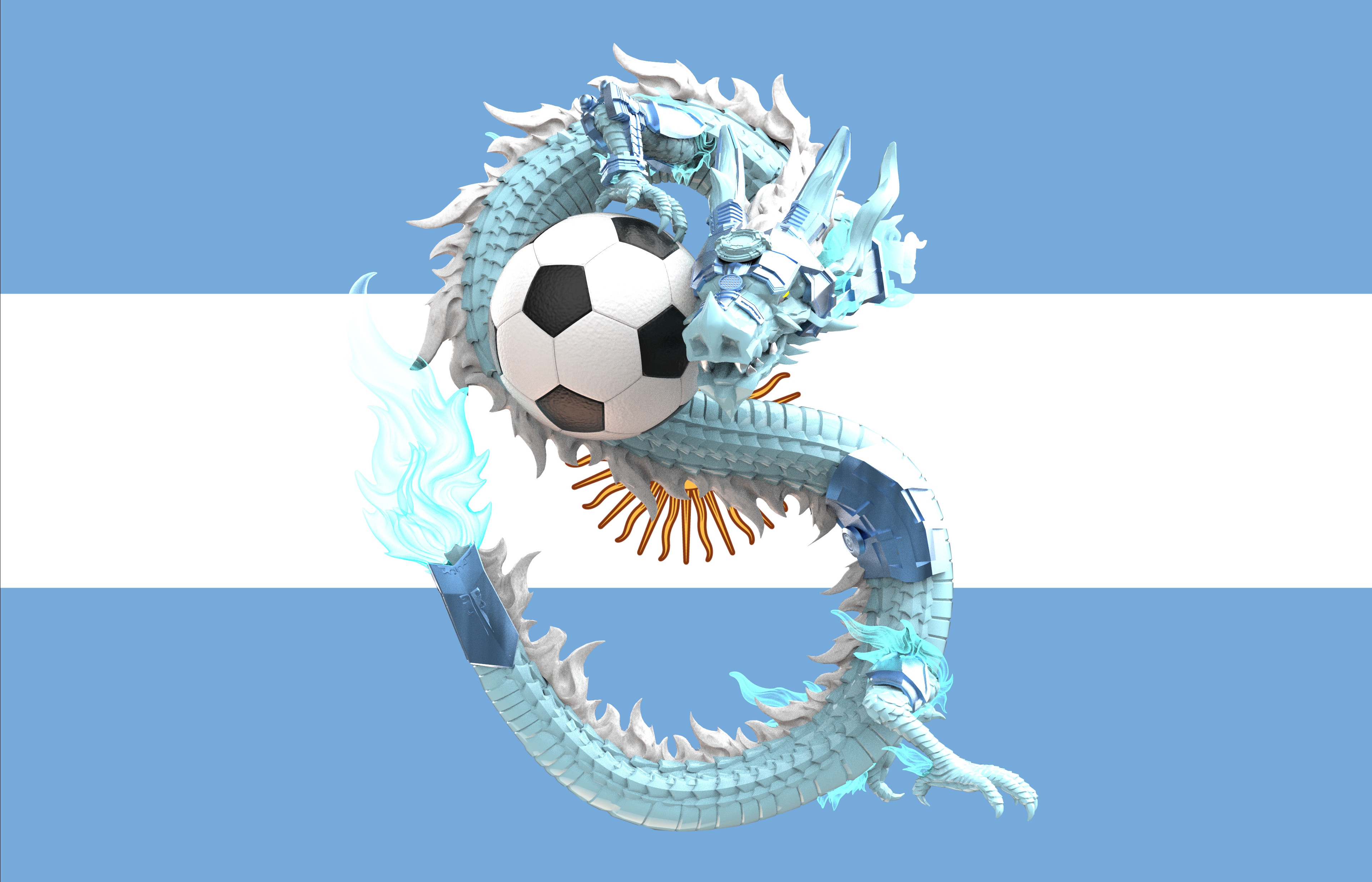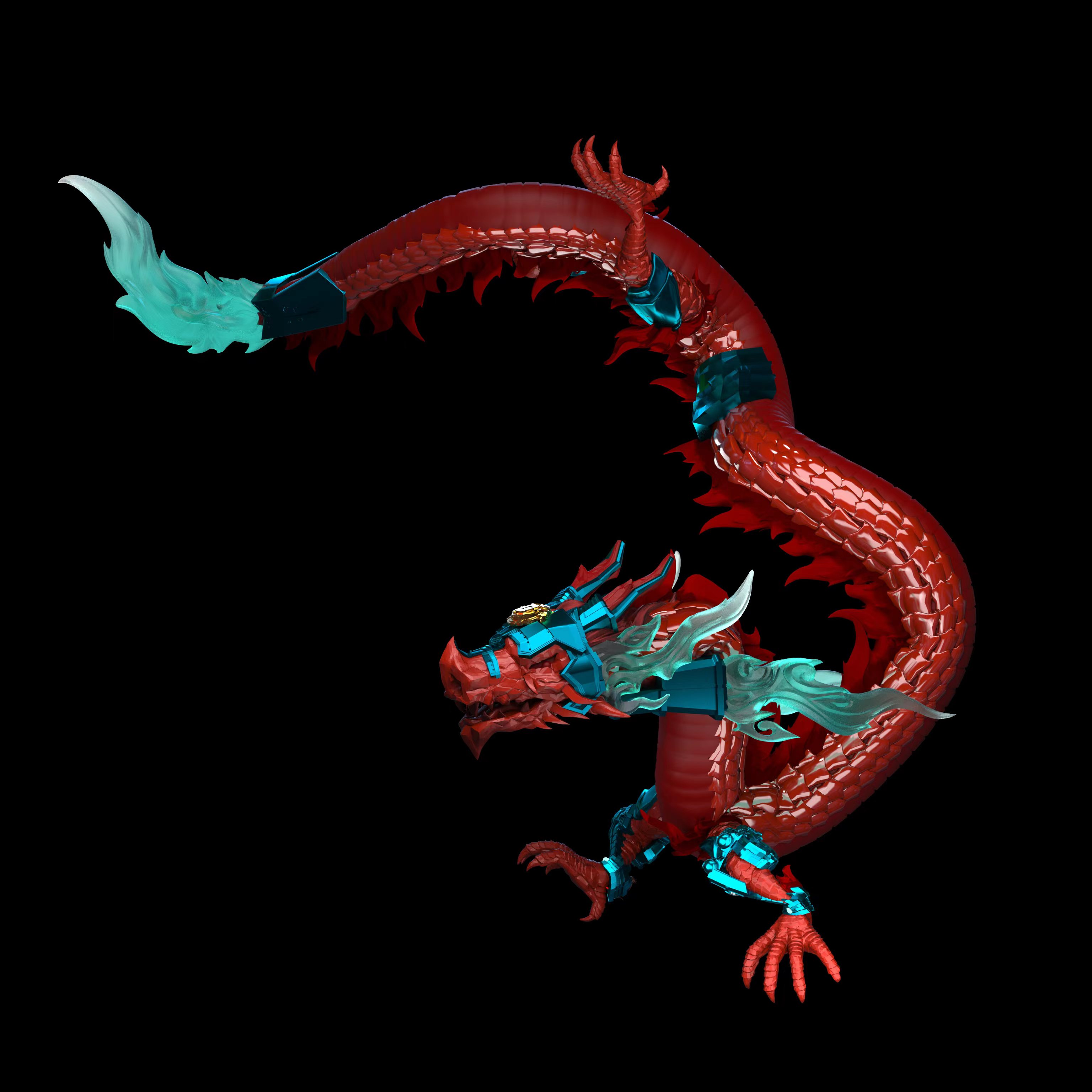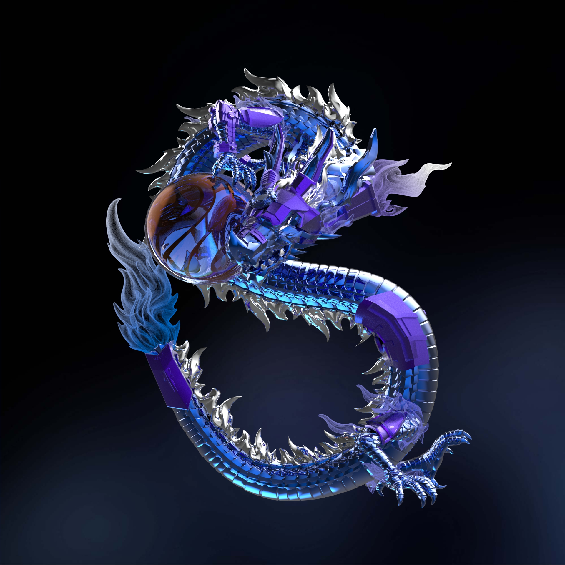 中华龙IP造型方面:将长城形象植入底座,把金属朋克元素和街头文化融入龙身,既融合了东方传统与现在潮流,又保留了龙的神圣与设计的先锋性。