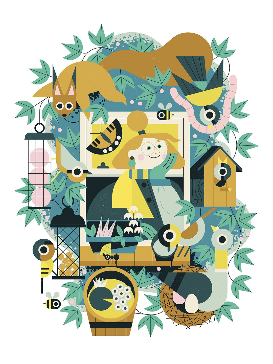 Owen Davey擅长使用传统和前沿的数字技术来创造自然和复古的灵感图像,创造出极具现代和时尚的作品。在元素上,他擅长于用强烈的纹理、图案和调色板以友好、平易近人的方式传达意义,达到视觉互动的效果。插画设计色彩鲜艳,夺人眼球,洞察90后强烈的个性化需求,“自成一派”。活泼又时尚,非常收到年轻人酷炫的审美。