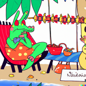 图片名称: 恐龙躺在沙滩椅上晒太阳