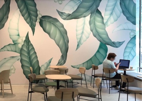 品牌:星巴克上海淮海路艺术家:Yu-Hsuan Wang星巴克-上海淮海百盛门店,为星巴克所画的咖啡叶子壁纸,位于上海淮海百盛的门店了解更多 -